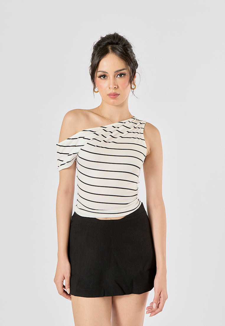 Izendra Black and White Stripes Asymmetrical Design Tank Top