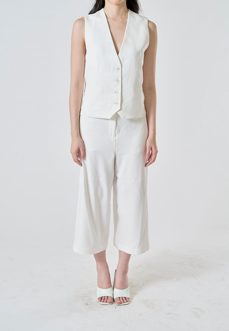 Jacinta White V Neck Single Breasted Button Closure Waistcoat Vest