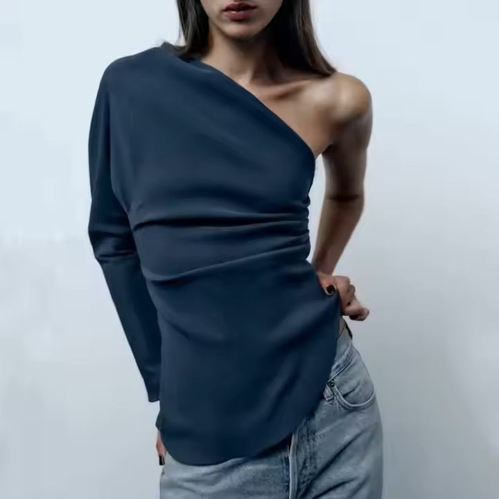 Journee Teal Asymmetrical Long Sleeve Side Pleated Top