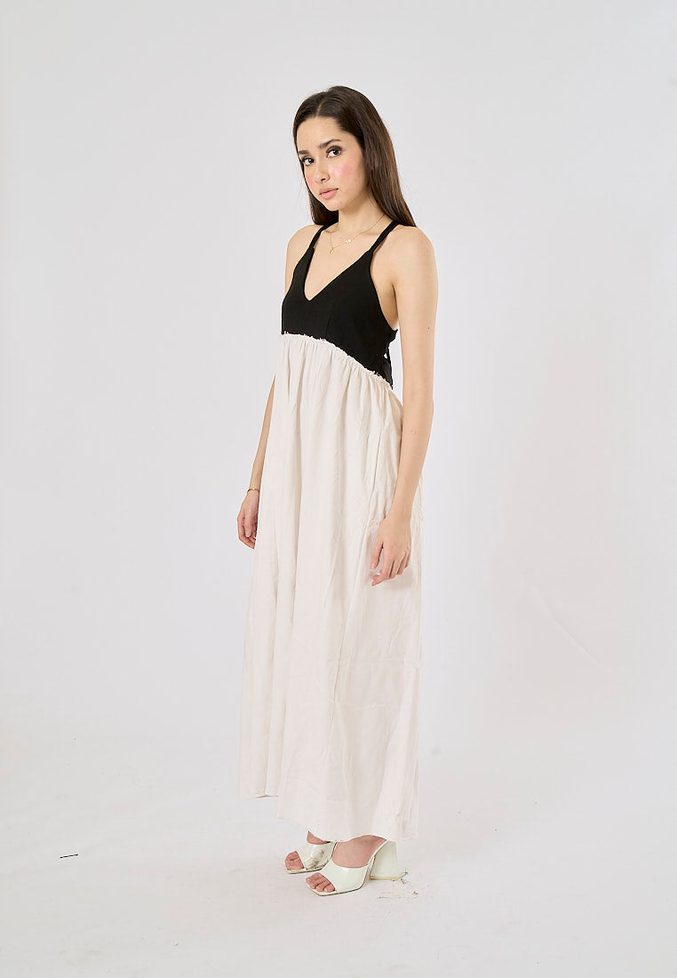 Zeya Beige Halter Sling Contrast Back Hollow Out Midi Dress