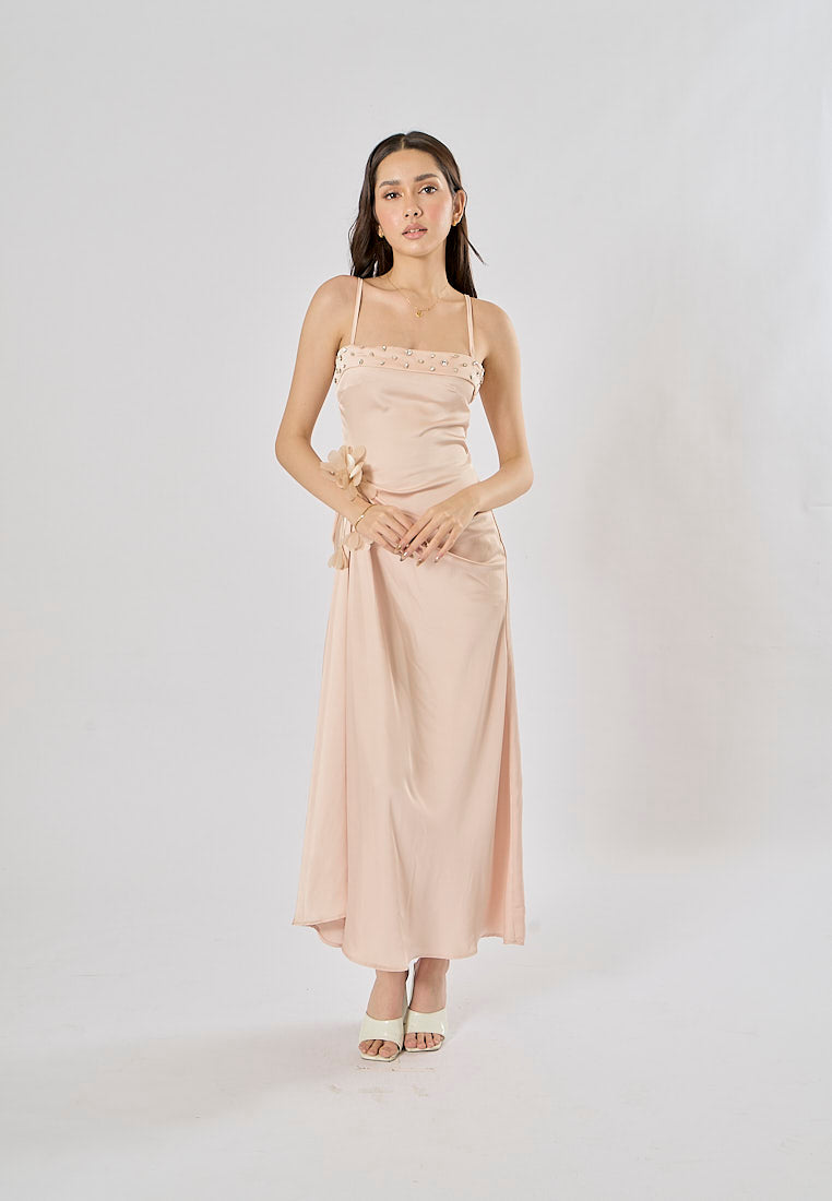 [FOR RENT] Cecilia Beige Patchwork Design Midi Dress