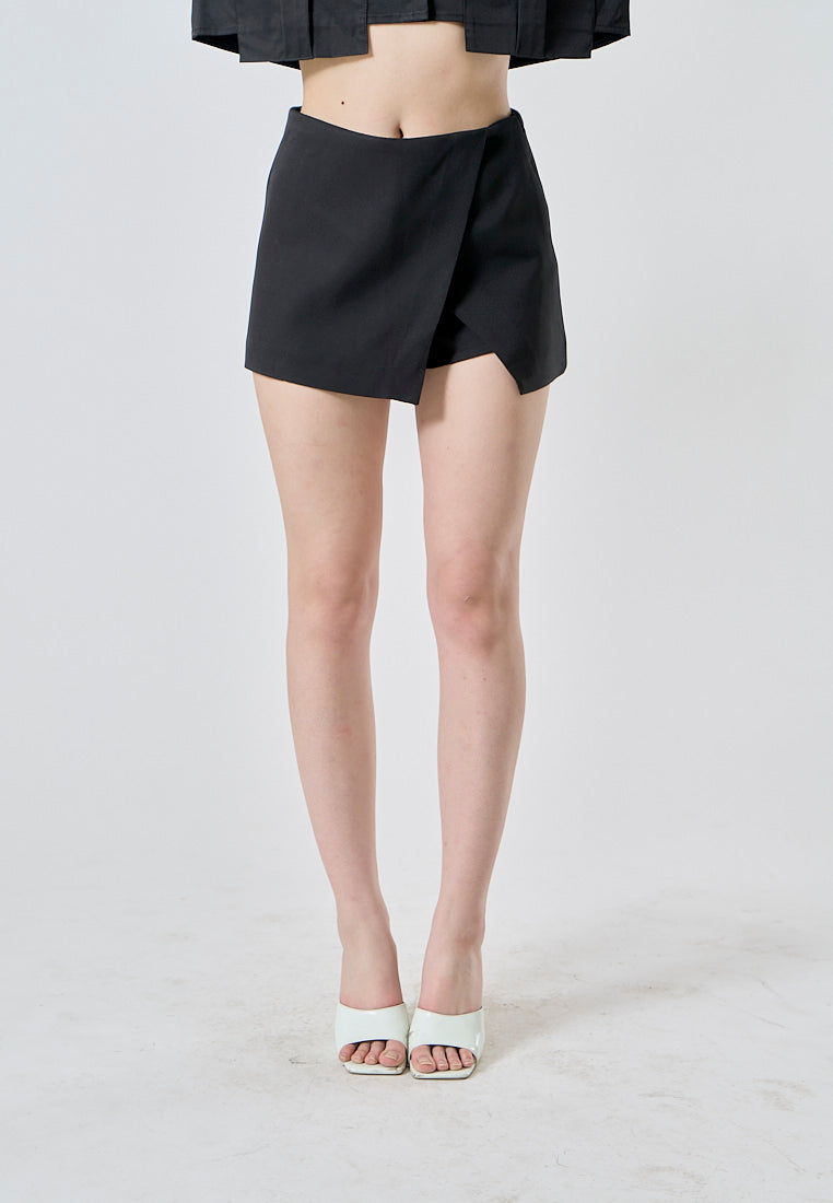 Wren Black Front Overlap Side Zipper Casual Mini Skorts