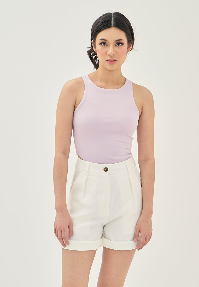 Klea Purple Crew Neck Sleeveless Bodysuit