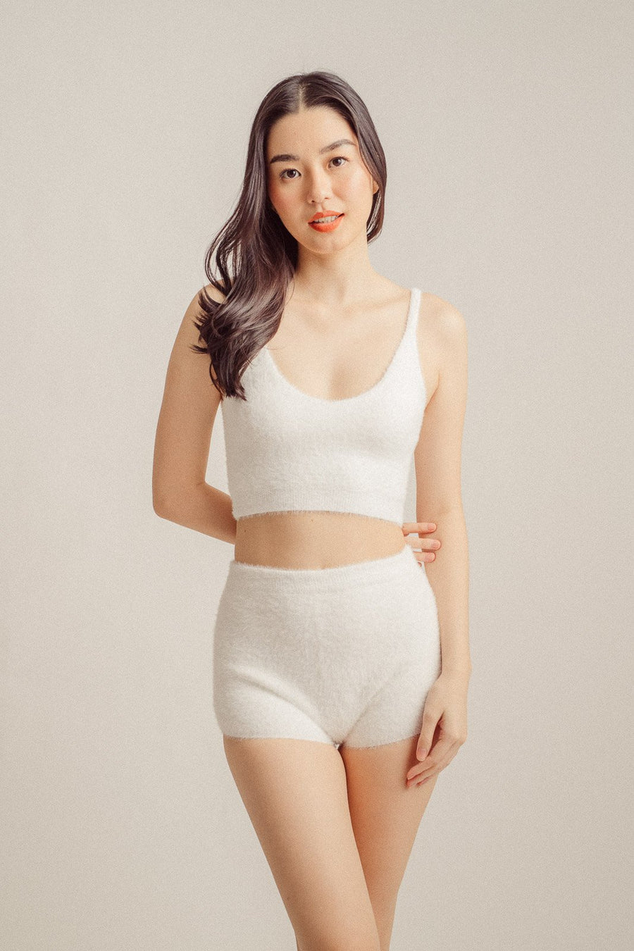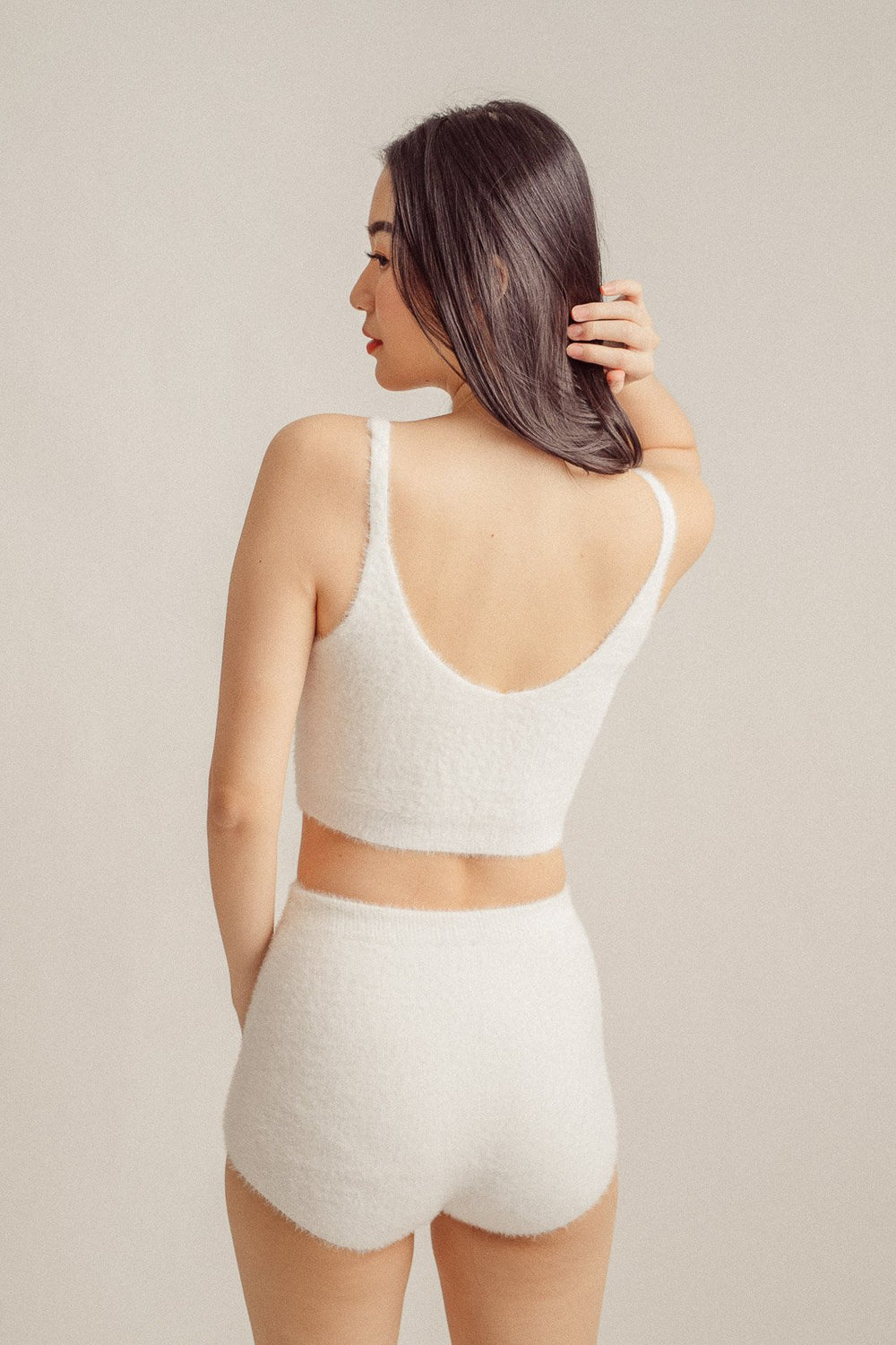 Pan Cream Halter Long Sleeved High Waisted Camisole Mini Dress