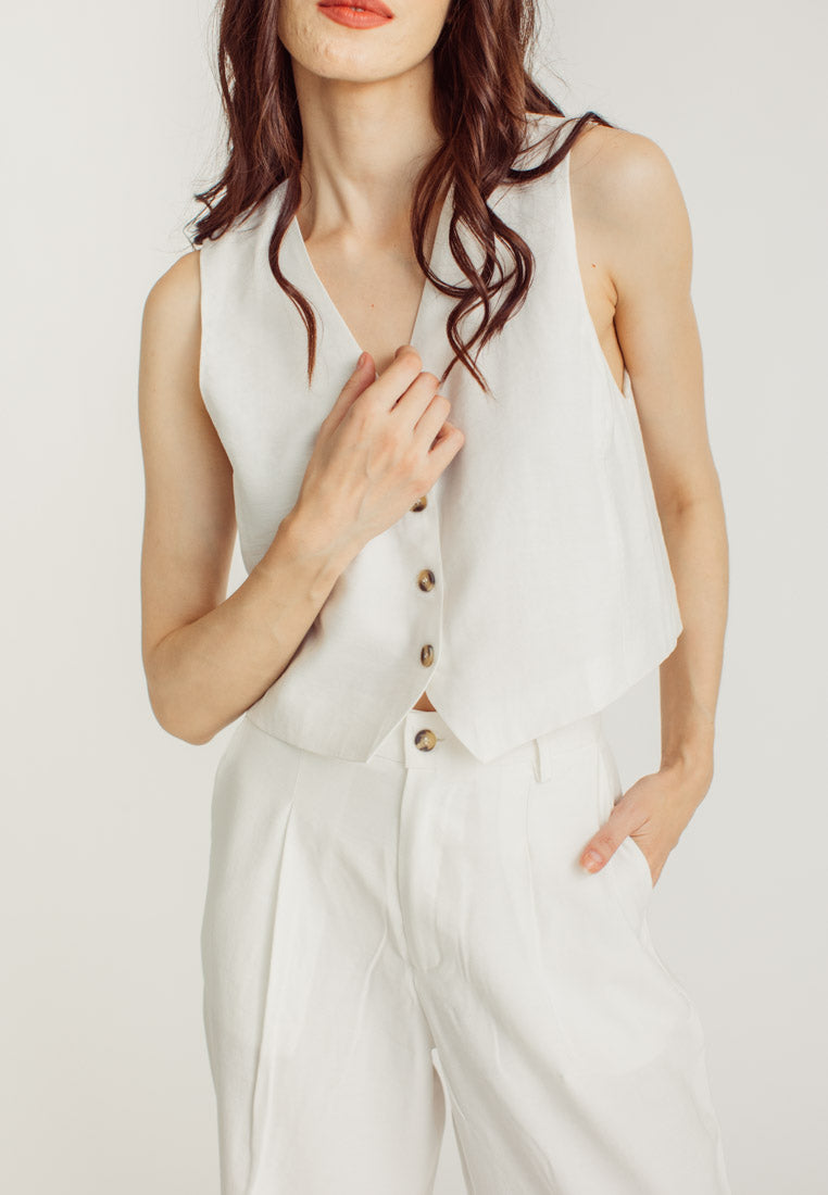 Liana White Button Sleeveless Waist Coat Vest