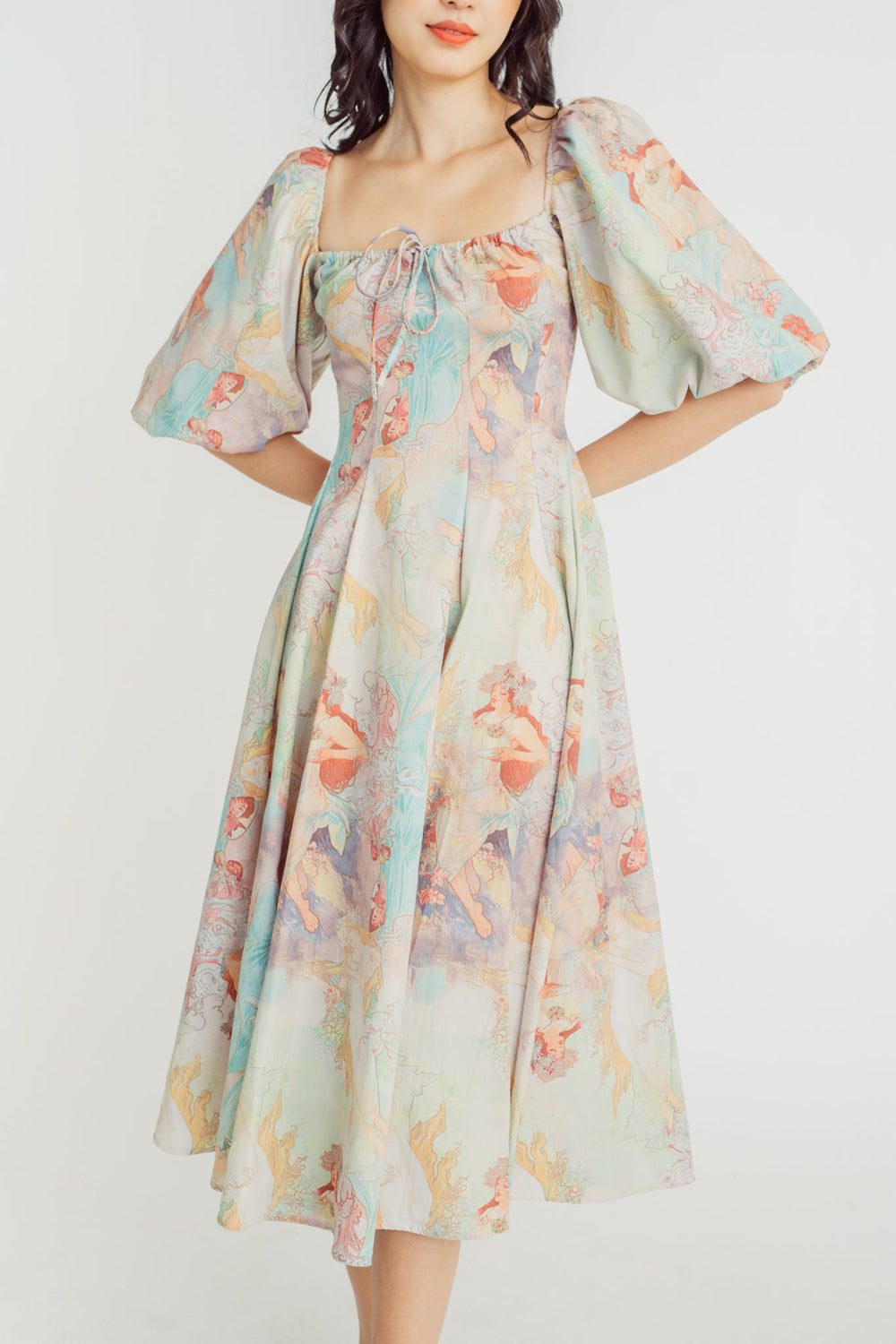 Mori Multicolor Print Straight Cut Tube Midi Dress
