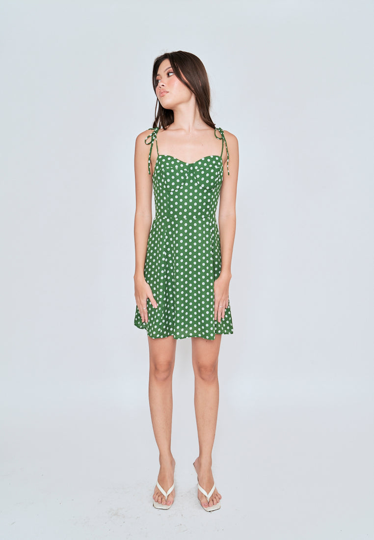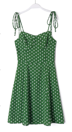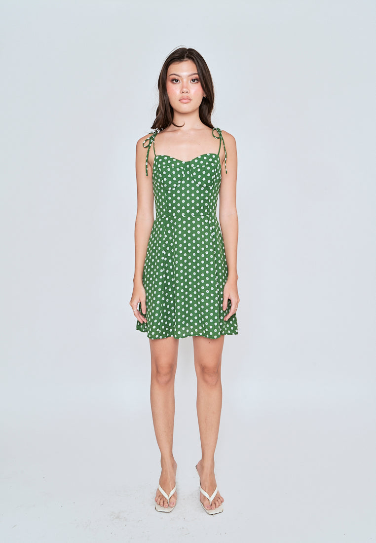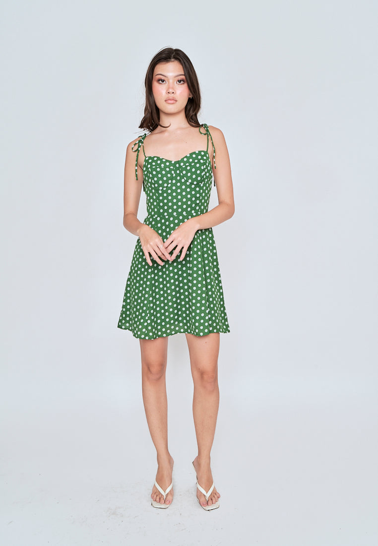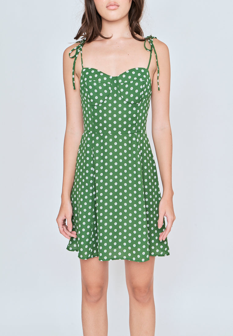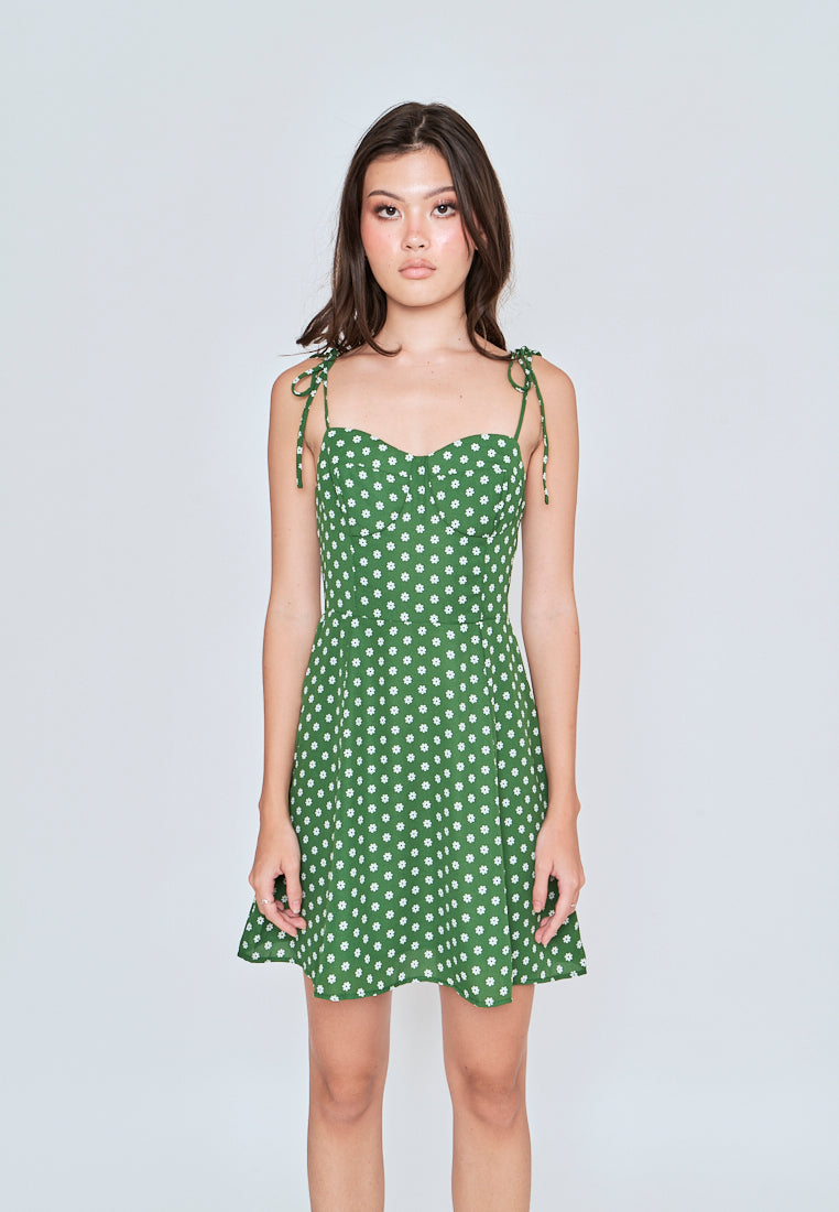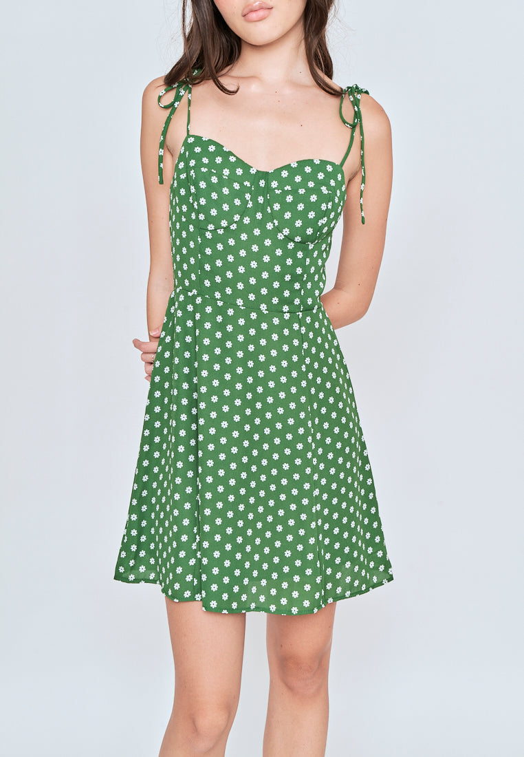 Zethea Green With White Floral All Over Print Self Tie Mini Dress