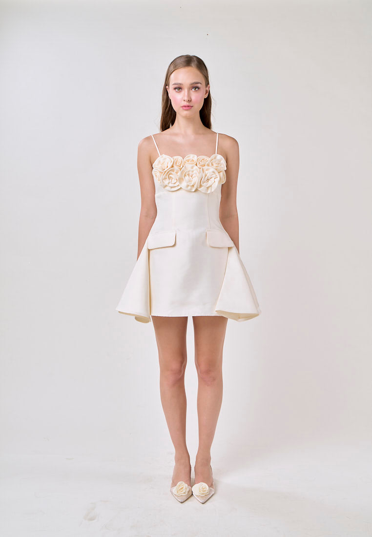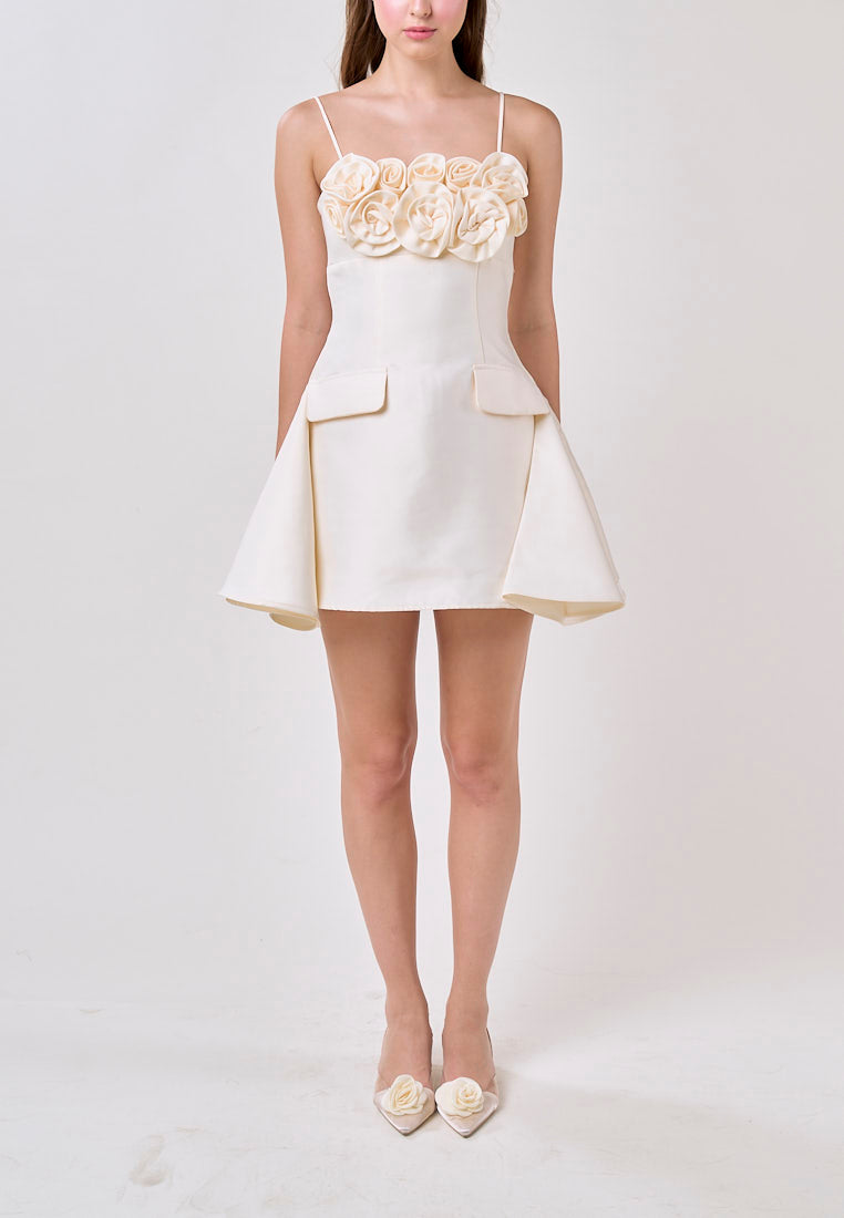 Molly Cream Sleeveless Flower Top Mini Dress