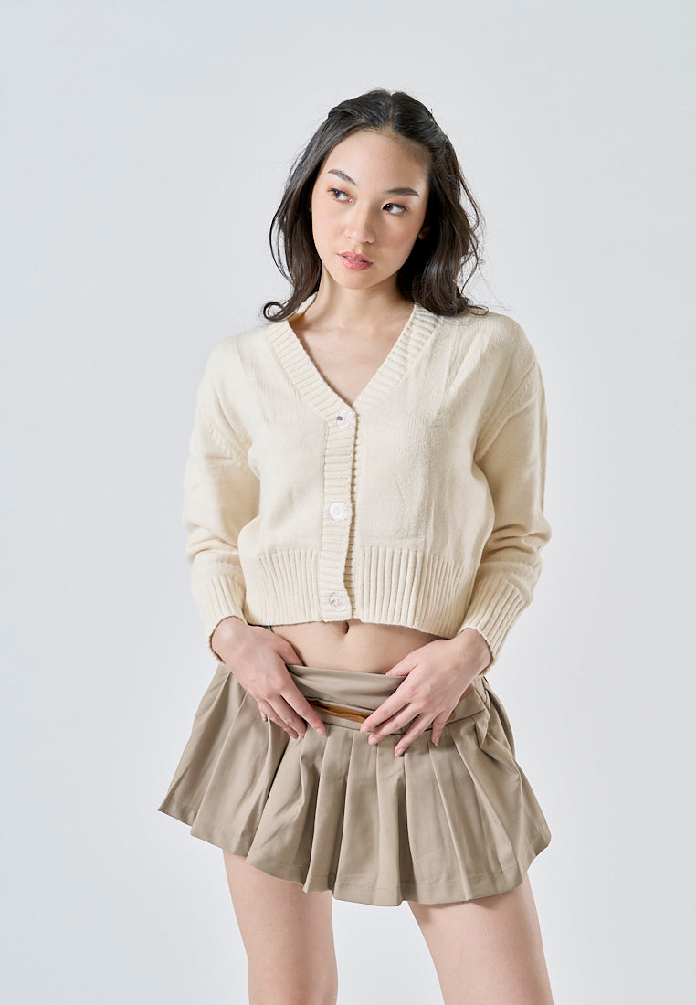 Miyabi Cream Knitted Low Neck Button Down Long Sleeves Crop Top