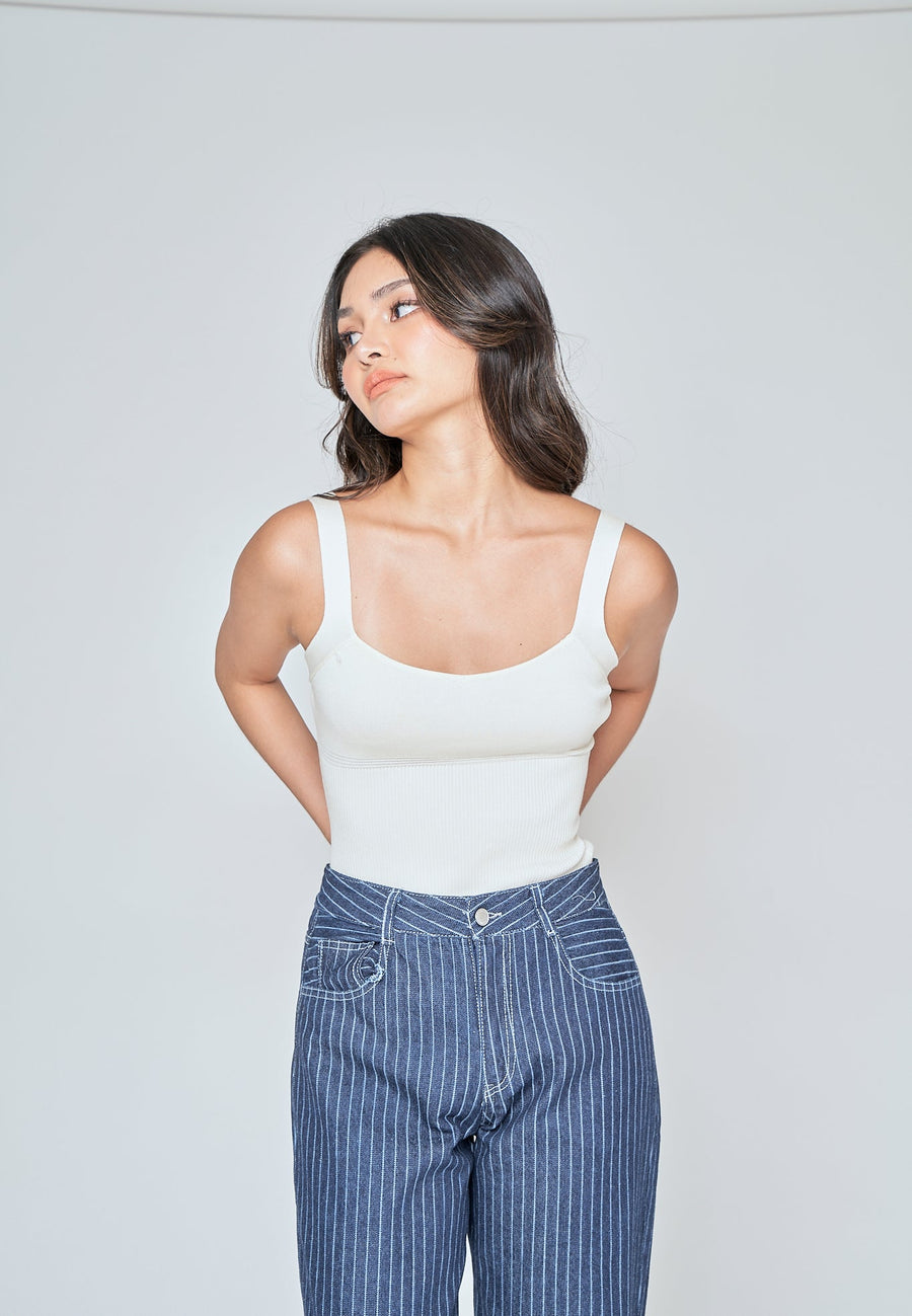 Sadira White Knitted Scoop Neck Sleeveless Bodysuit