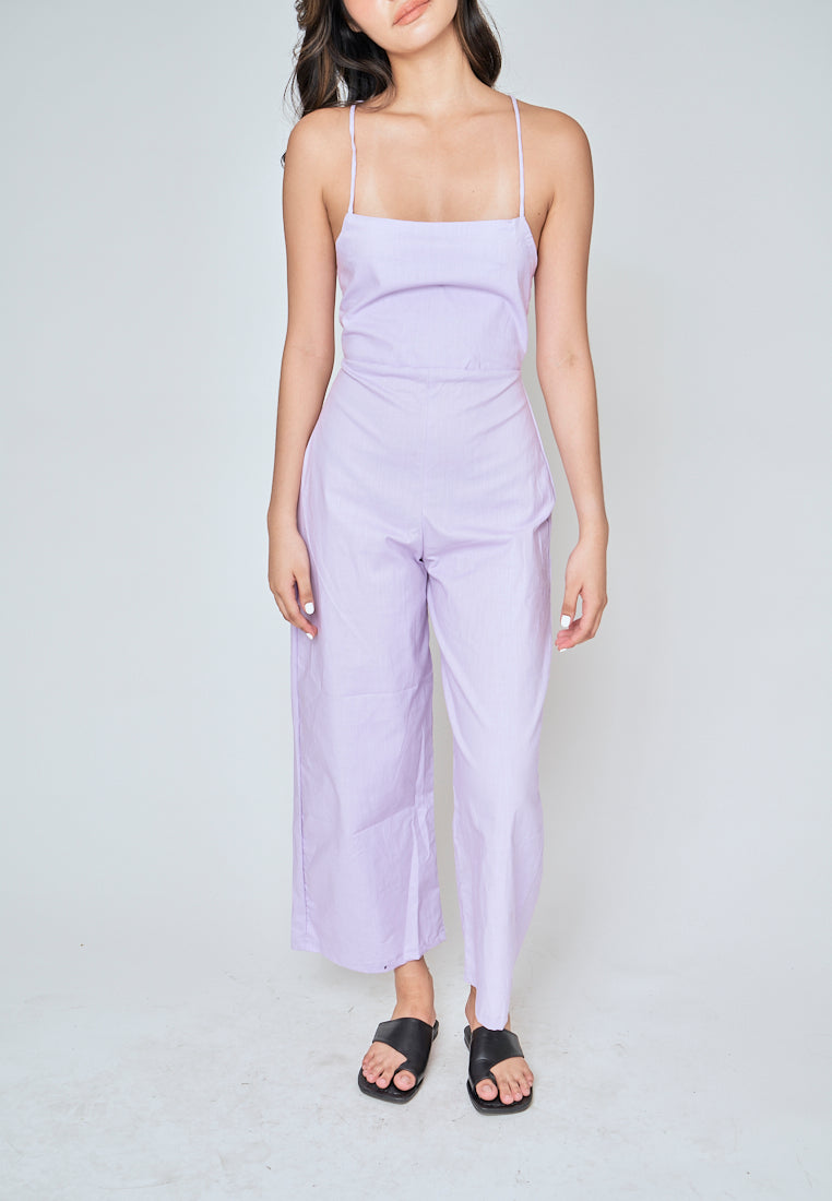Rafaela Purple Linen Sleeveless Criss Cross Zipper Back Jumpsuit
