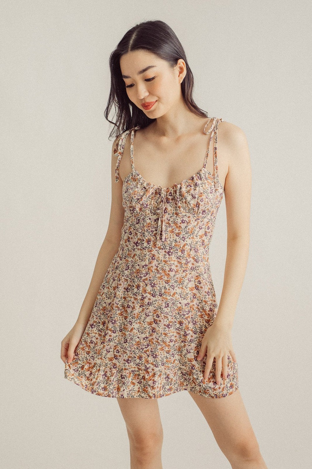 Nikkola Beige Square Neck Shoulder Strap Sleeveless Mini Dress