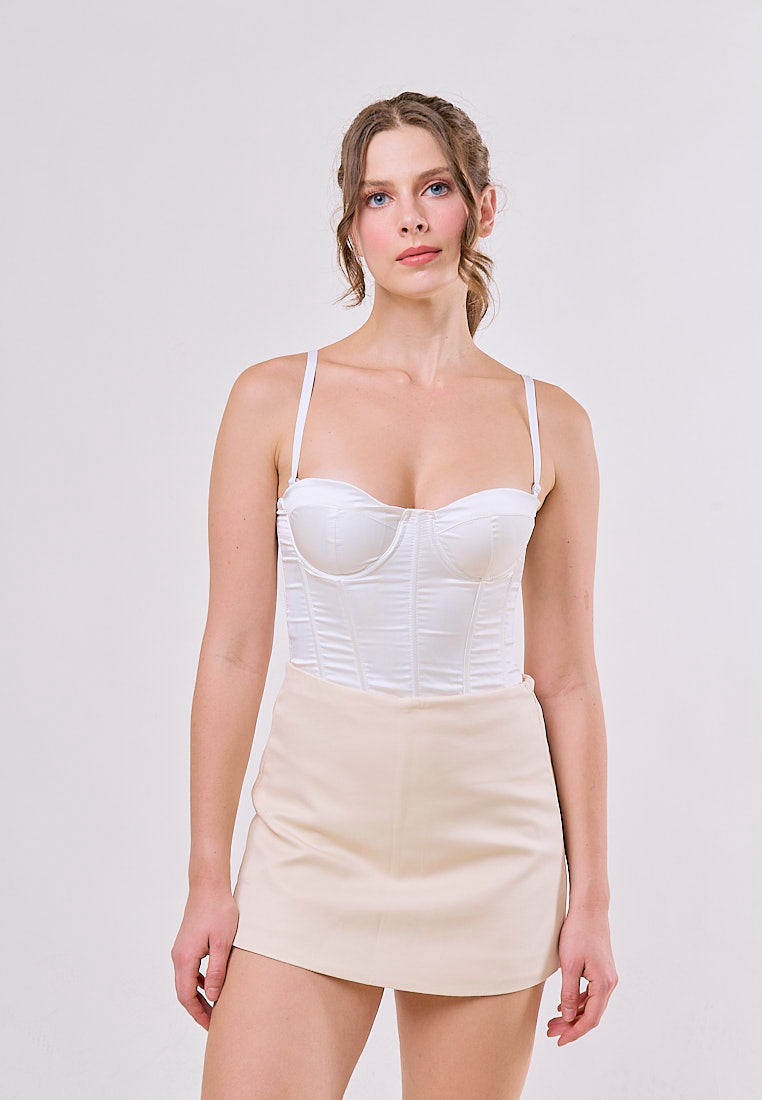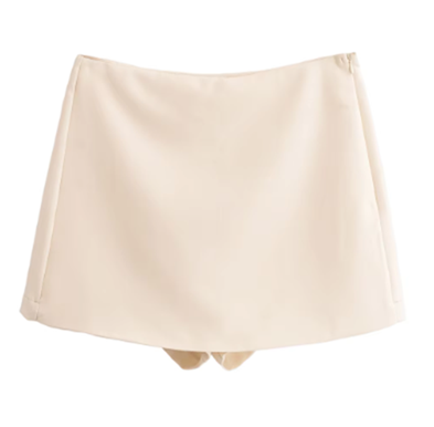 Bodie Beige Overlap Side Zipper Casual Mini Skort