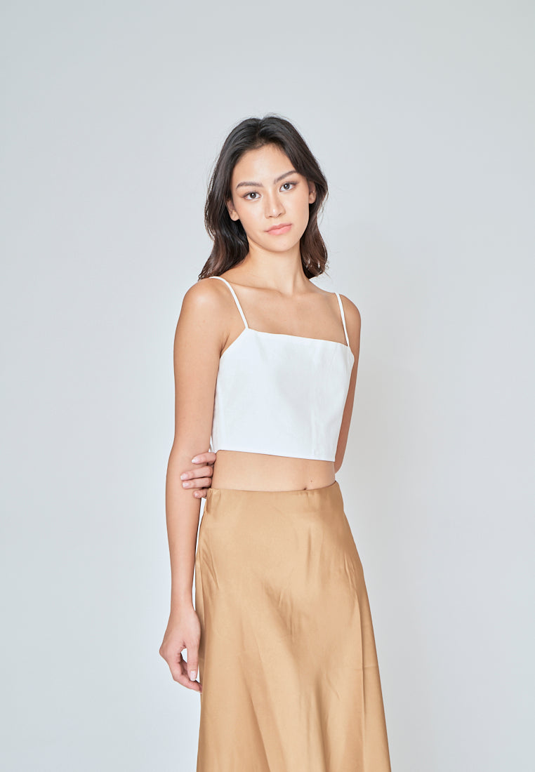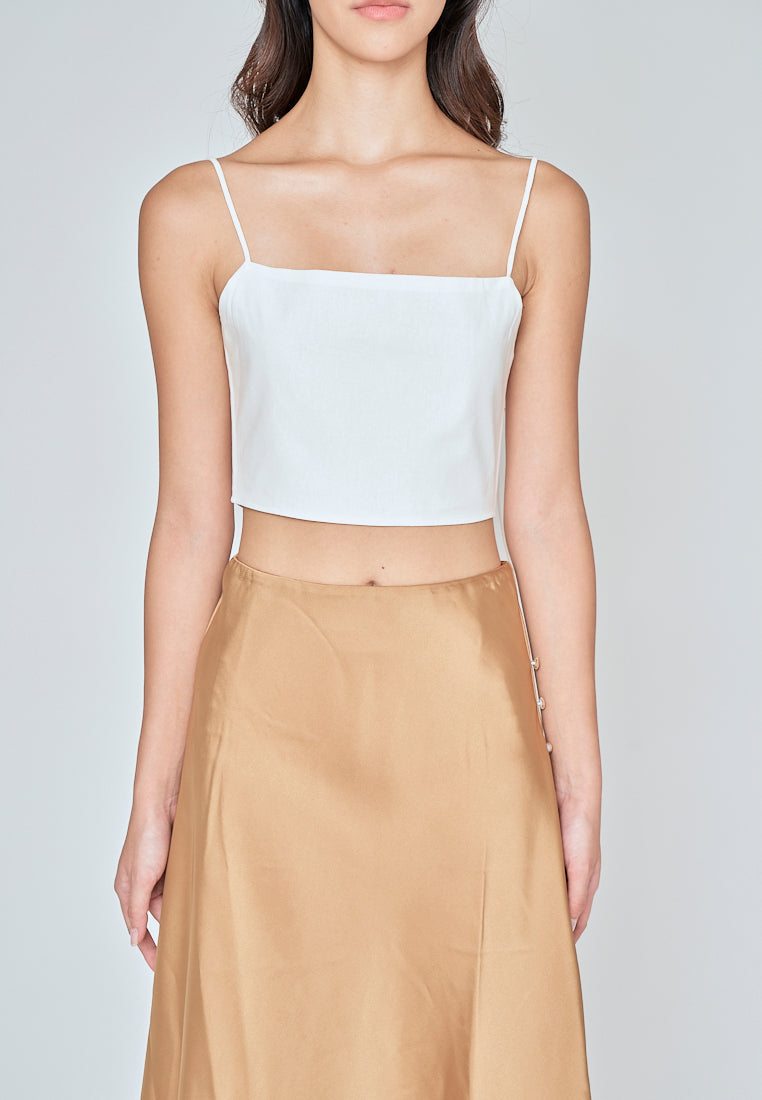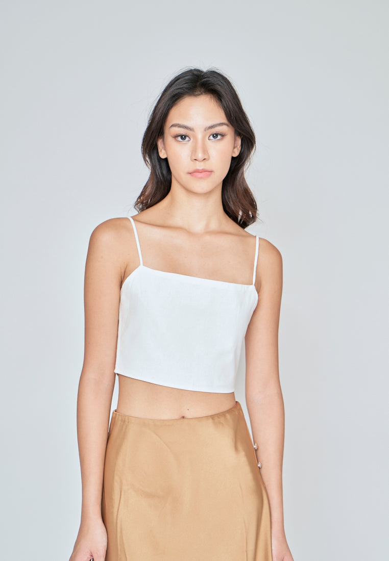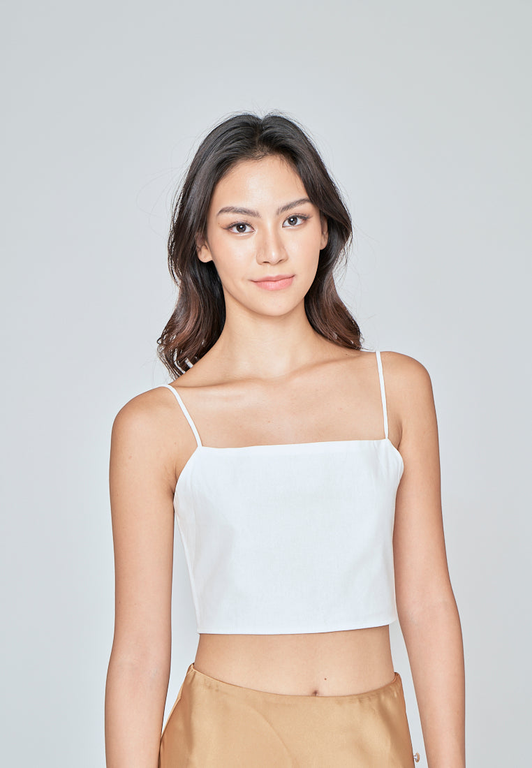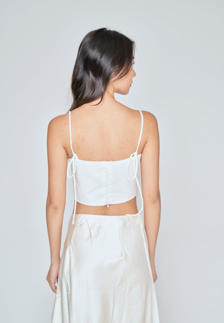Fumi White Linen Sleeveless Self Tie Strap Zipper Back Top