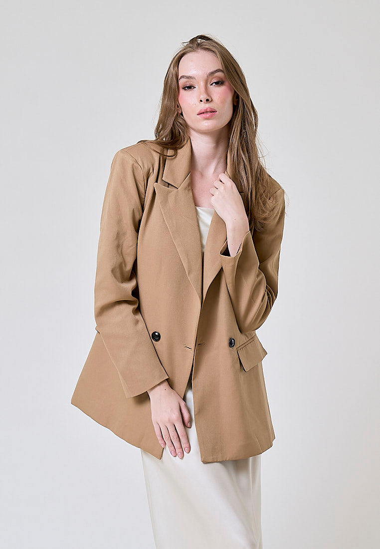 Abrielle Black Crew Neck Gold Button Long Sleeves Blazer
