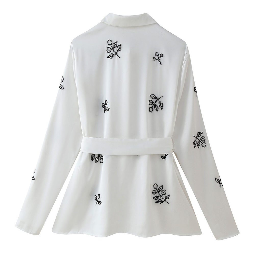 Jair White Embroidered Turn Down Collar White Color Long Sleeve