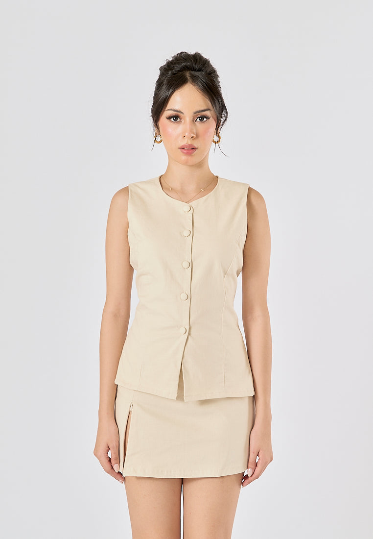 Halina Beige Single Breasted Button Closure Waistcoat Vest